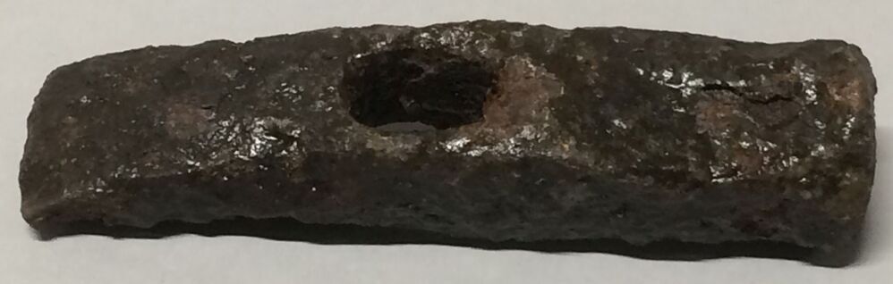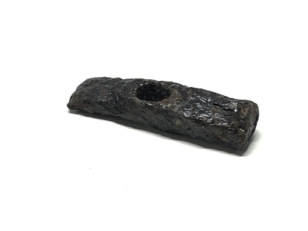Kleine ijzeren hamer met een beitelvormige voorkant en een rond steelgat