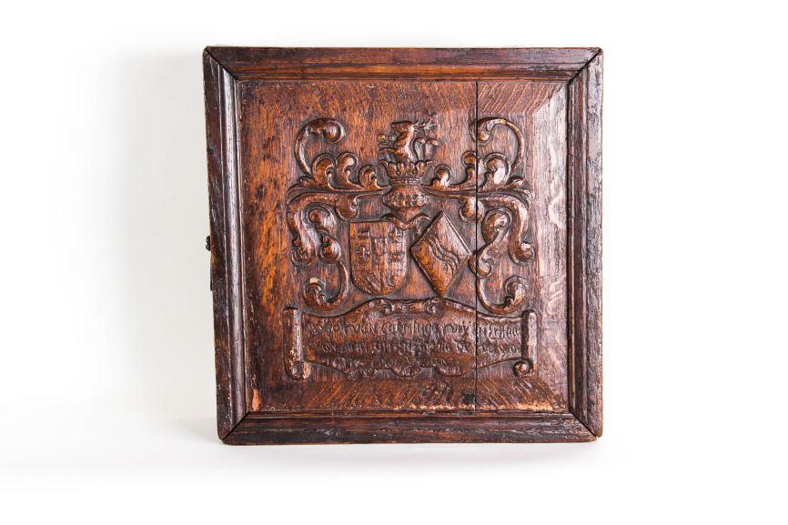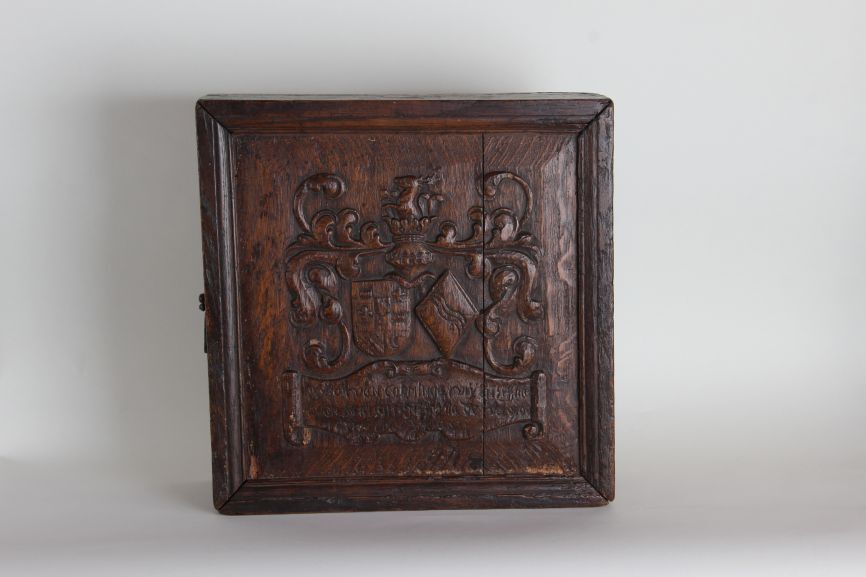 Triktrakbak met alliantiewapens van Wytze van Cammingha en Sophia van Vervou
