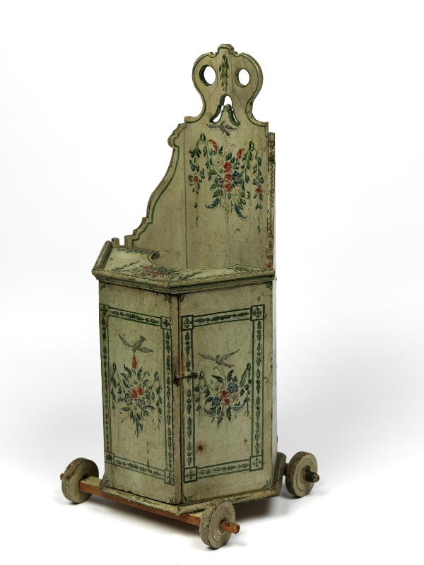 Kakstoel pop met bloemguirlandes, vogels en vaas