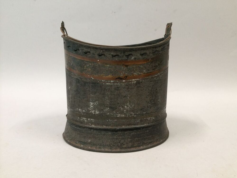 Theestoof, onderdeel van comfoor met theeketel van gelakt blikken theestoofje met hengsel
