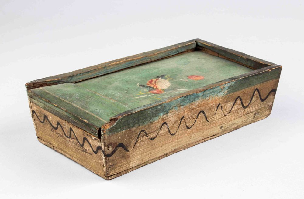 Houten doosje met schuifdeksel, groen met bloemetjes