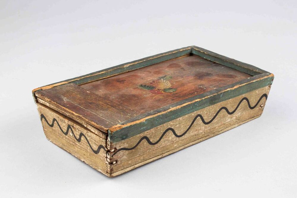 Houten doosje met schuifdeksel, rood met bloemetjes