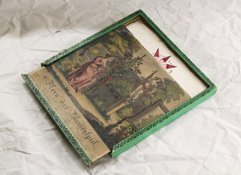 Spel Flora, het bloemenspel, in houten met papier beplakte doos