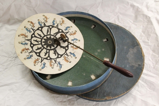 Zes van oorspronkelijk twaalf optische schijven van karton voor phenakitoscoop