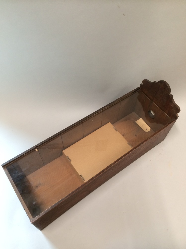 Eikenhouten kijkkast met zeven stel van zes kijkplaten