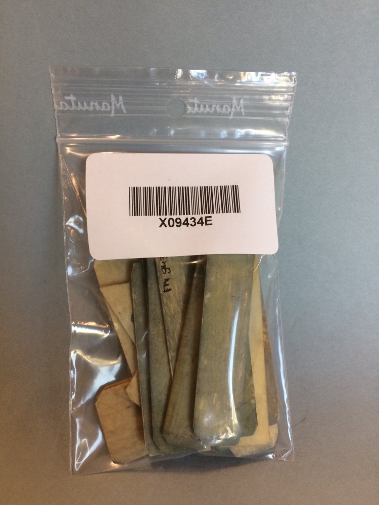 Zakje met 22 groene fiches, onderdeel van kansspel in vier zakjes met rode en witte fiches en twee kartonnen doosjes