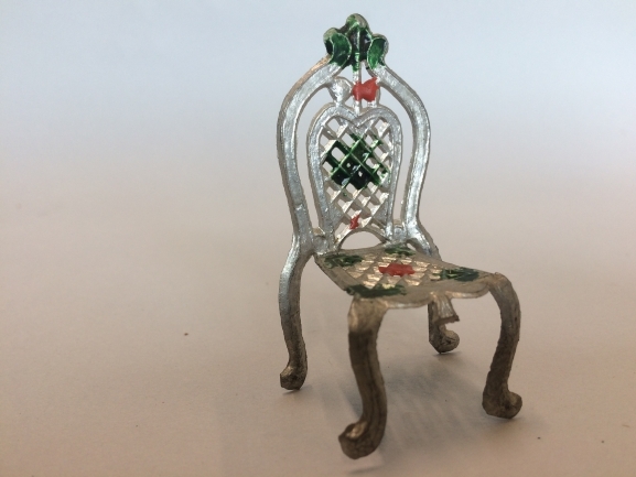 Stoel, 1 van 10, onderdeel van doos met tinnen poppenmeubeltjes