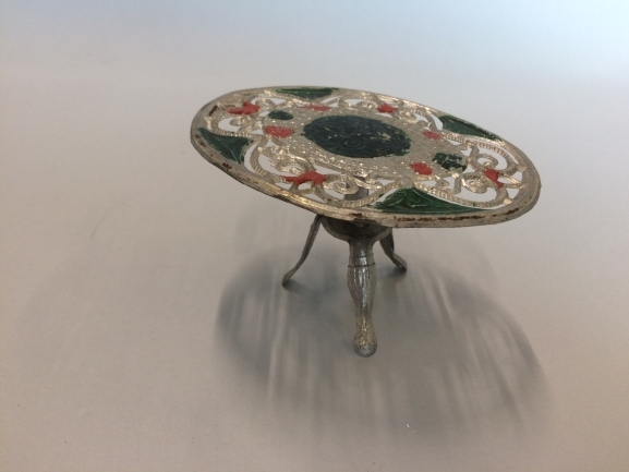 Klaptafel, onderdeel van doos met tinnen poppenmeubeltjes