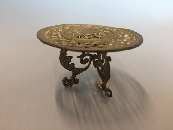 Tafel, onderdeel van twee vergulde tinnen stoelen met een ronde tafel