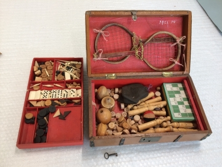 Houten koffer met diverse spellen
