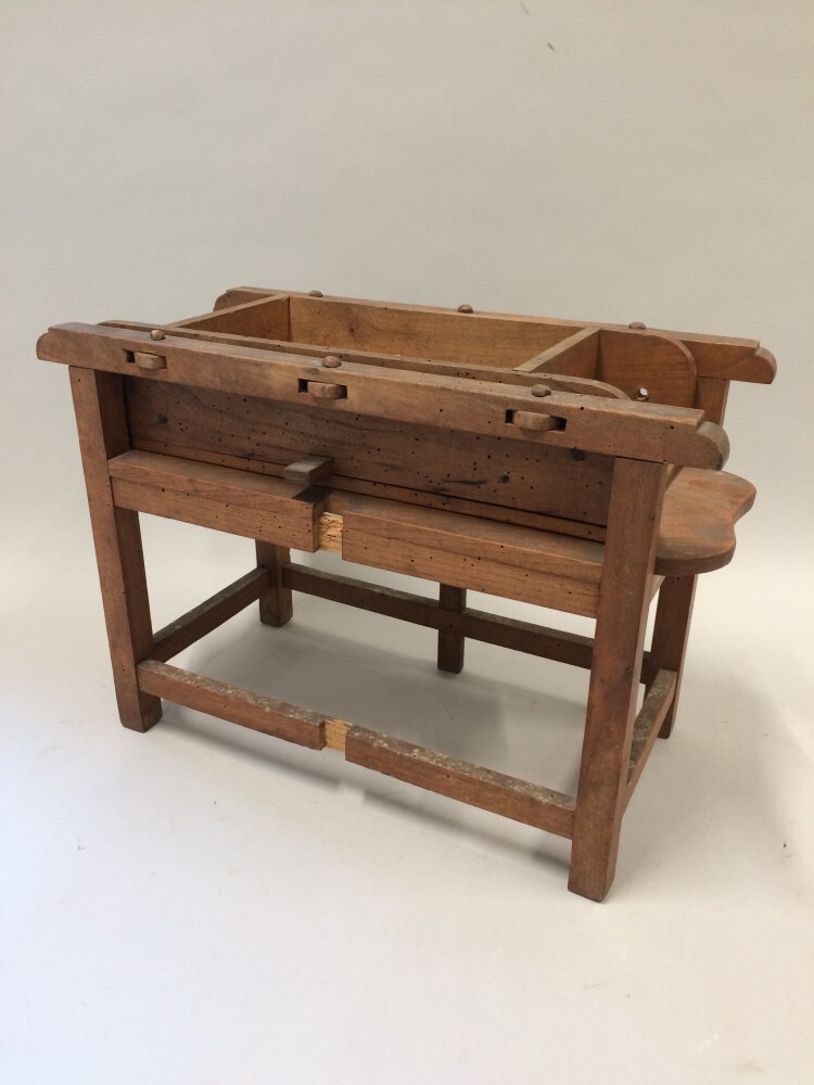 Kindertrekmangeltje van iepenhout, deksel en gewichten ontbreken