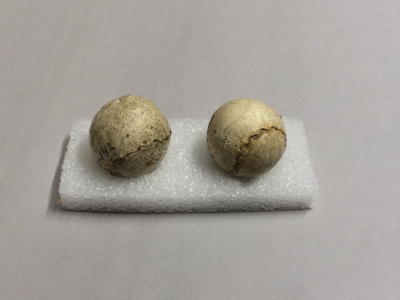 Kaatsballen, twee stuks kleine ballen van wit leer
