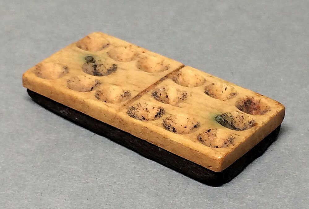 Dominosteen met bovenkant van been en onderkant van ebbenhout