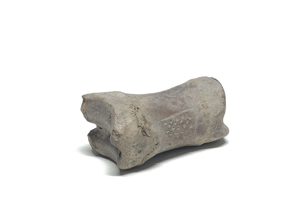 Runderkoot met op de bovenkant een omkaderd vierkant waarin puntjes zijn aangebracht