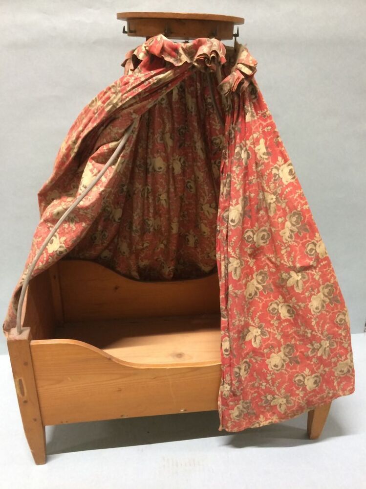 Poppenhemelbed van vurenhout met ijzeren gehemelte