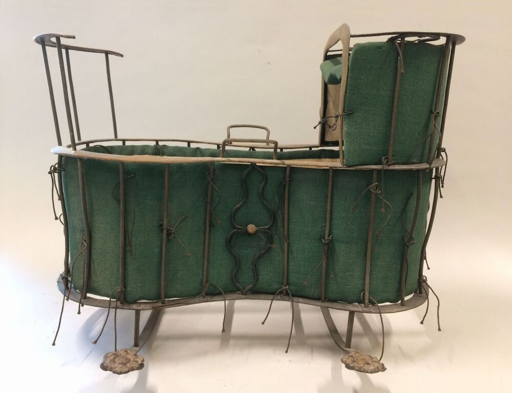 IJzeren poppewiegje met ingebogen lange zijden, afgewerkt met messing