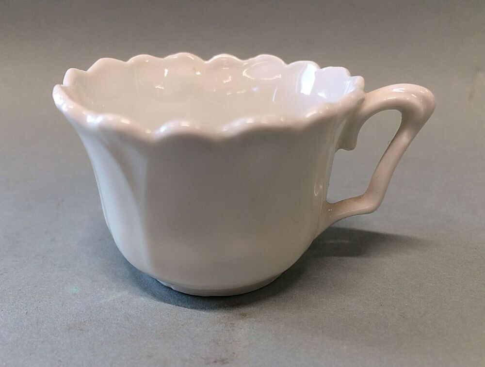 Kop, onderdeel van wit porseleinen kinderserviesje, bestaande uit: trekpotje, melkkannetje, suikerpotje, 6 kop en schotels
