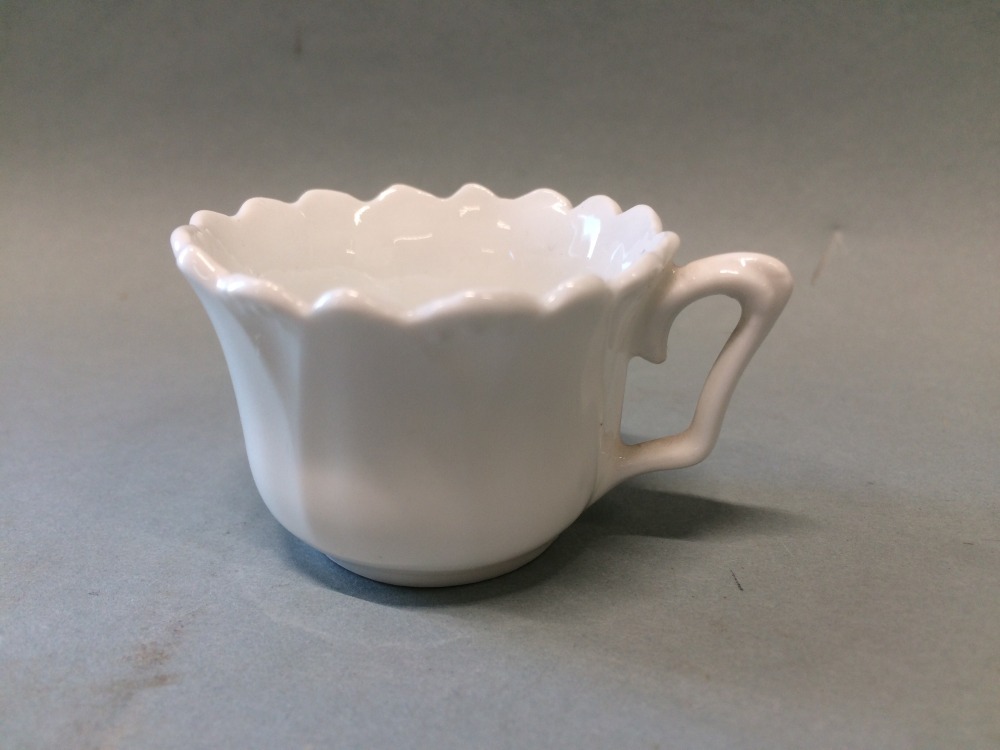 Kop, onderdeel van wit porseleinen kinderserviesje, bestaande uit: trekpotje, melkkannetje, suikerpotje, 6 kop en schotels