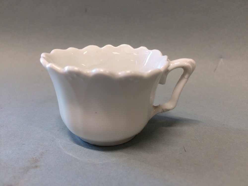 Kop, onderdeel van wit porseleinen kinderserviesje, bestaande uit: trekpotje, melkkannetje, suikerpotje, 6 kop en schotels