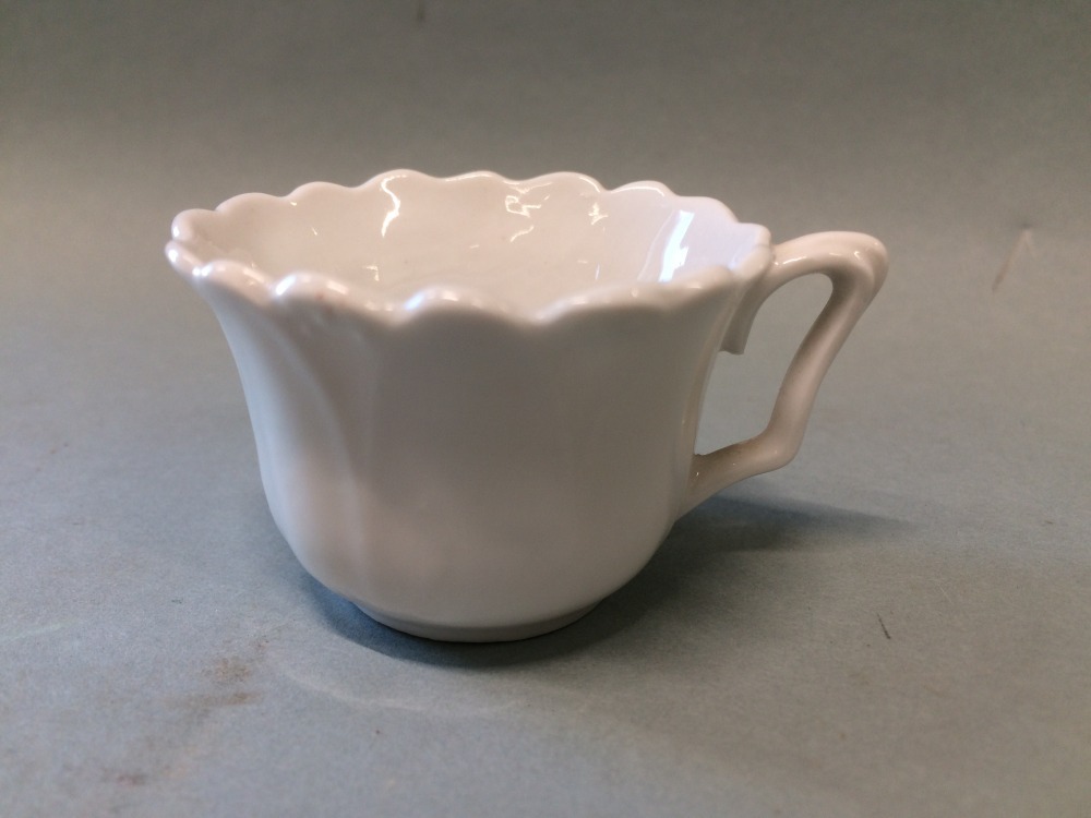 Kop, onderdeel van wit porseleinen kinderserviesje, bestaande uit: trekpotje, melkkannetje, suikerpotje, 6 kop en schotels