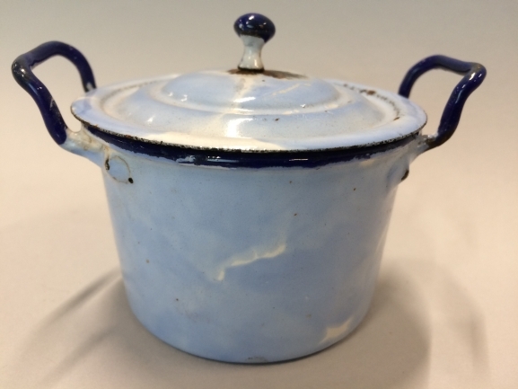 Pan met deksel, onderdeel van set van zes grijs geëmailleerde pannen