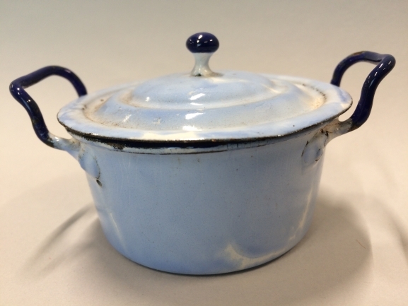 Pan met deksel, onderdeel van set van zes grijs geëmailleerde pannen