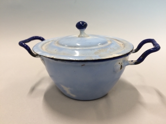 Pan met deksel, onderdeel van set van zes grijs geëmailleerde pannen