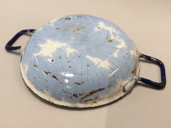Braadpan, onderdeel van set van zes grijs geëmailleerde pannen
