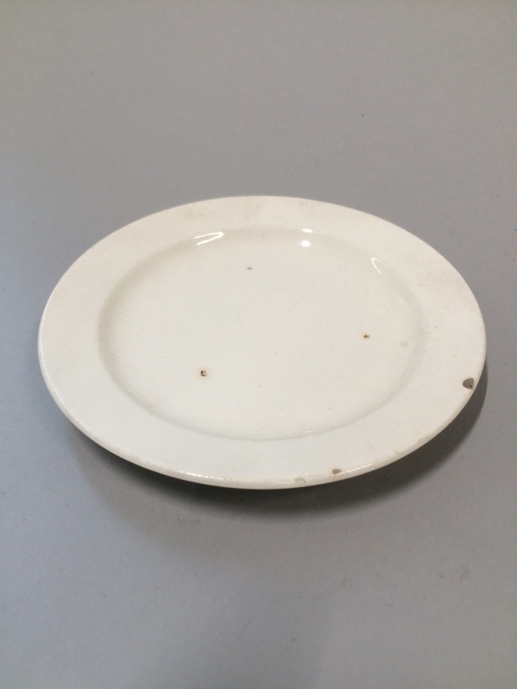 Plat bord, onderdeel van kinderservies bestaande uit twee schalen, vijf vleesschalen en twee platte borden