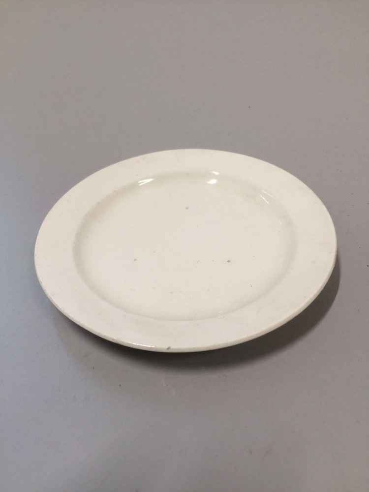 Plat bord, onderdeel van kinderservies bestaande uit twee schalen, vijf vleesschalen en twee platte borden