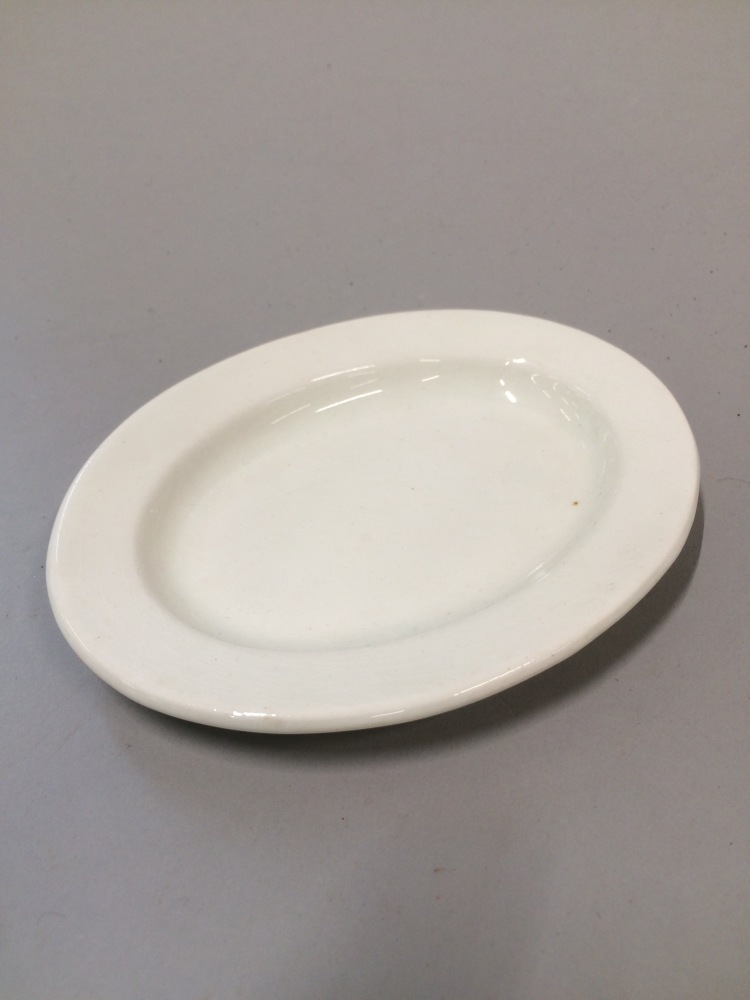 Ovale vleesschaal, onderdeel van kinderservies bestaande uit twee schalen, vijf vleesschalen en twee platte borden