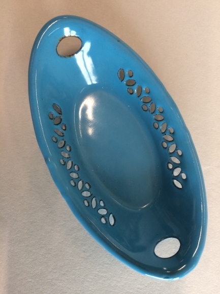 Ovale schaal met opengewerkte rand van blauw email