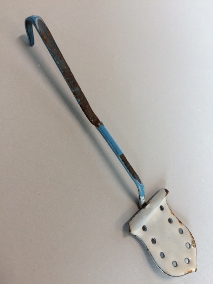 Schuimspaan van blauw en wit email