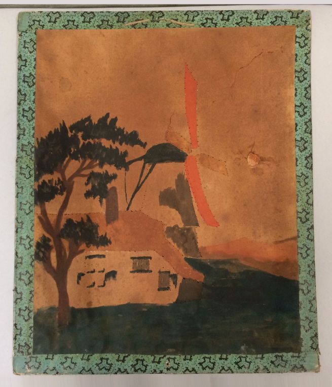 Een van zeventien panelen voor een kijkdoos, voorstellende een molen