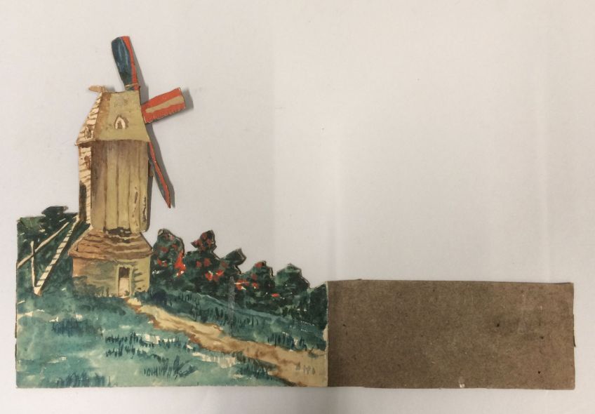 Een van zeventien panelen voor een kijkdoos, voorstellende een molen