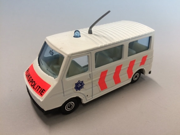 Speelgoedauto voorstellende bestelauto Rijkspolitie