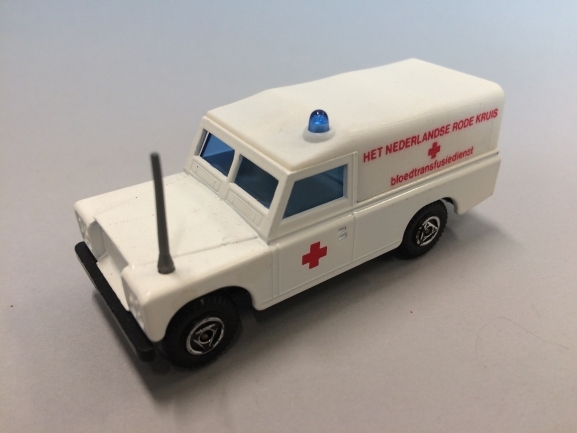 Speelgoedauto voorstellende landrover Nederlandse Rode Kruis / Bloedtransfusiedienst