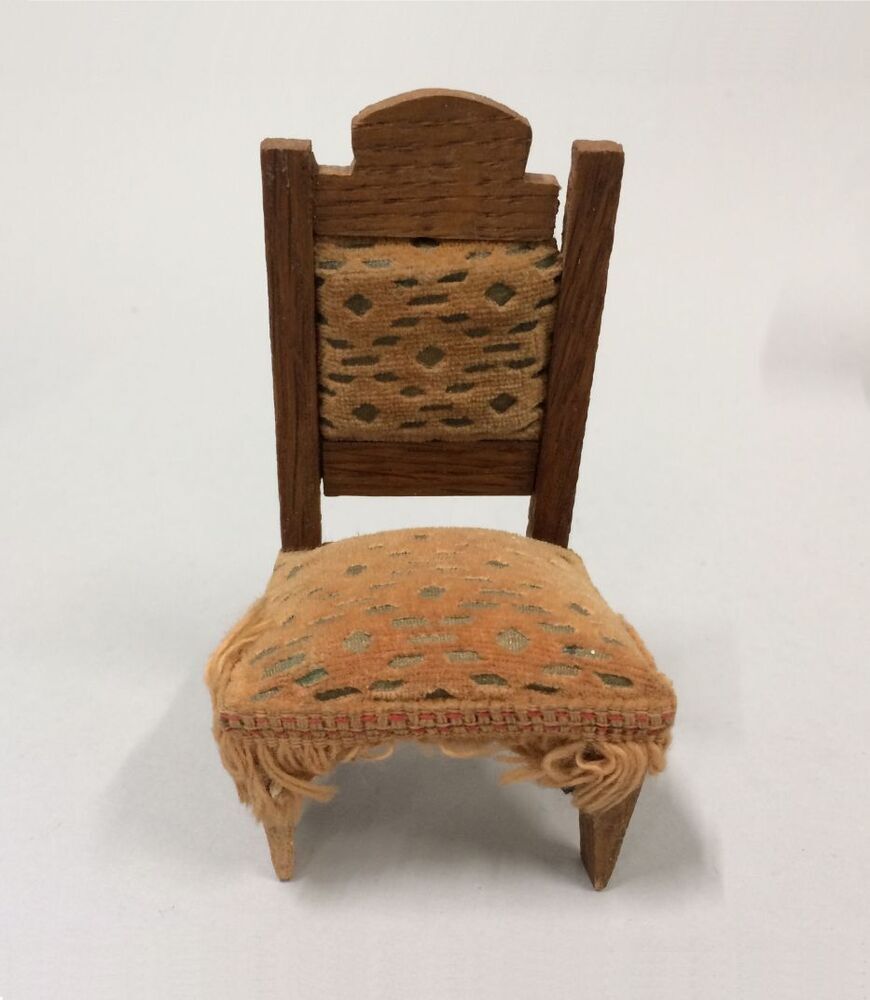 Stoel, onderdeel van poppenhuismeubels, bestaande uit 4 stoelen, ovale tafel (1928), bank met kast (conapé) en buffetkast