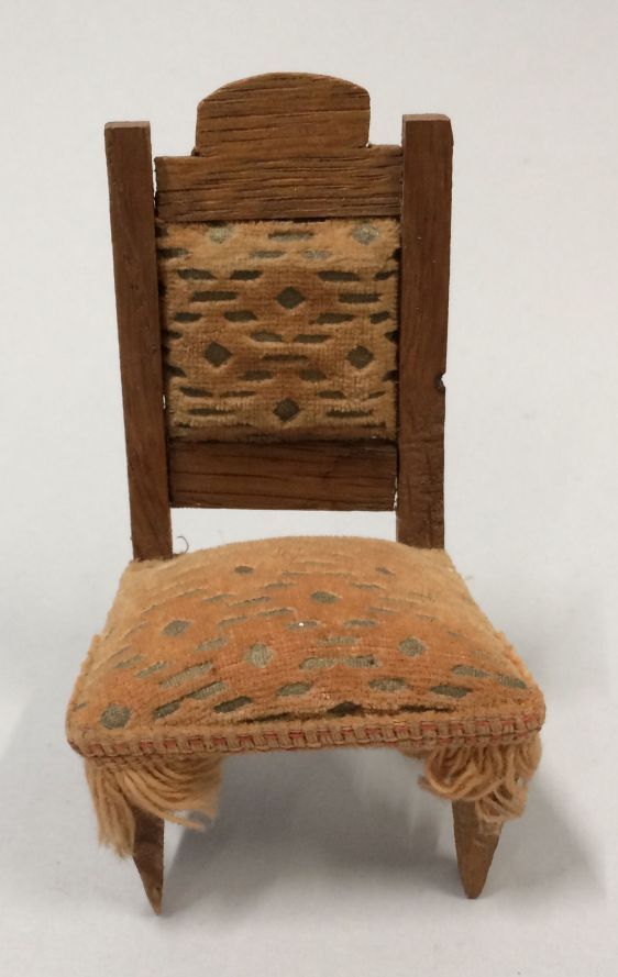 Stoel, onderdeel van poppenhuismeubels, bestaande uit 4 stoelen, ovale tafel (1928), bank met kast (conapé) en buffetkast