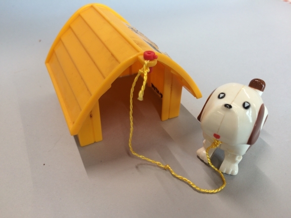 Hondehok met hond Bello, onderdeel van hondehok met hond Bello en vrouw, opwindbaar: hond en vrouw gaan lopen