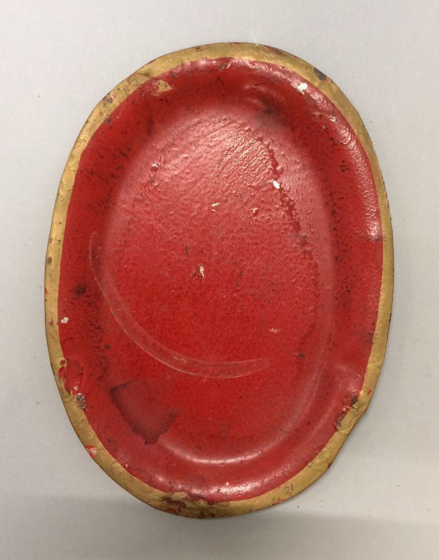 Rode schaal, onderdeel van keukengerei bestaande uit rode schaal met twee kommetjes