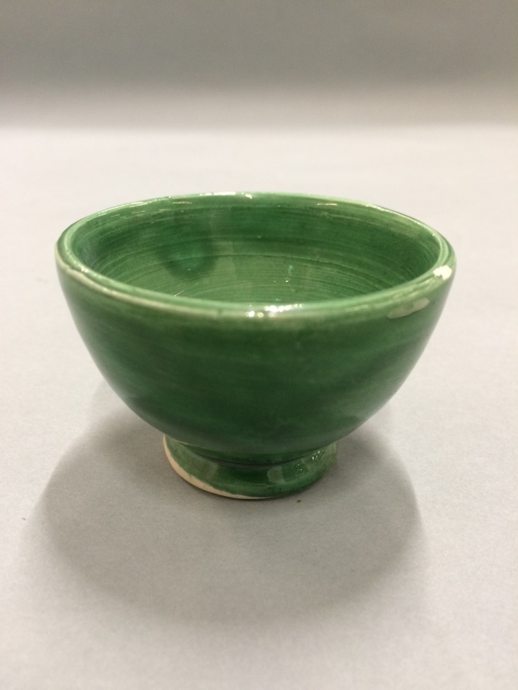 Kom, onderdeel van groen aardewerken zestiendelig servies, bestaande uit potten, kommen en drie deksels
