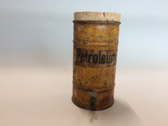 Blikken petroleumvat met onderaan het vat een kraantje