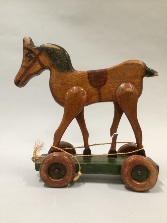 Houten speelgoedpaard op wieltjes