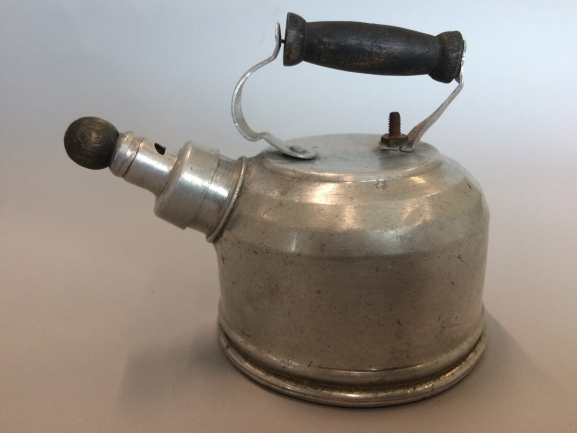 Fluitketelonderdeel van keukengerei, bestaande uit onder meer gasstel met aluminium pannen en fluitketel