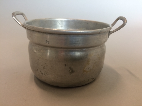Pan, onderdeel van keukengerei, bestaande uit onder meer gasstel met aluminium pannen en fluitketel