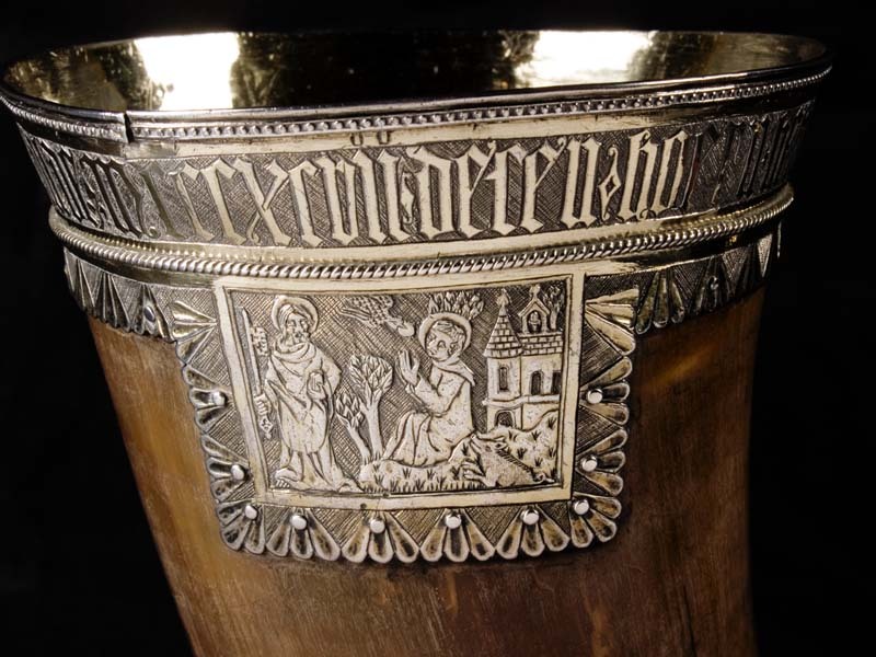 Drinkgerei gemaakt van een hoorn, in zilver of brons gemonteerd. (AAT-Ned) https://data.cultureelerfgoed.nl/term/id/cht/4450b612-51ac-4b87-a42b-ef2af2075241