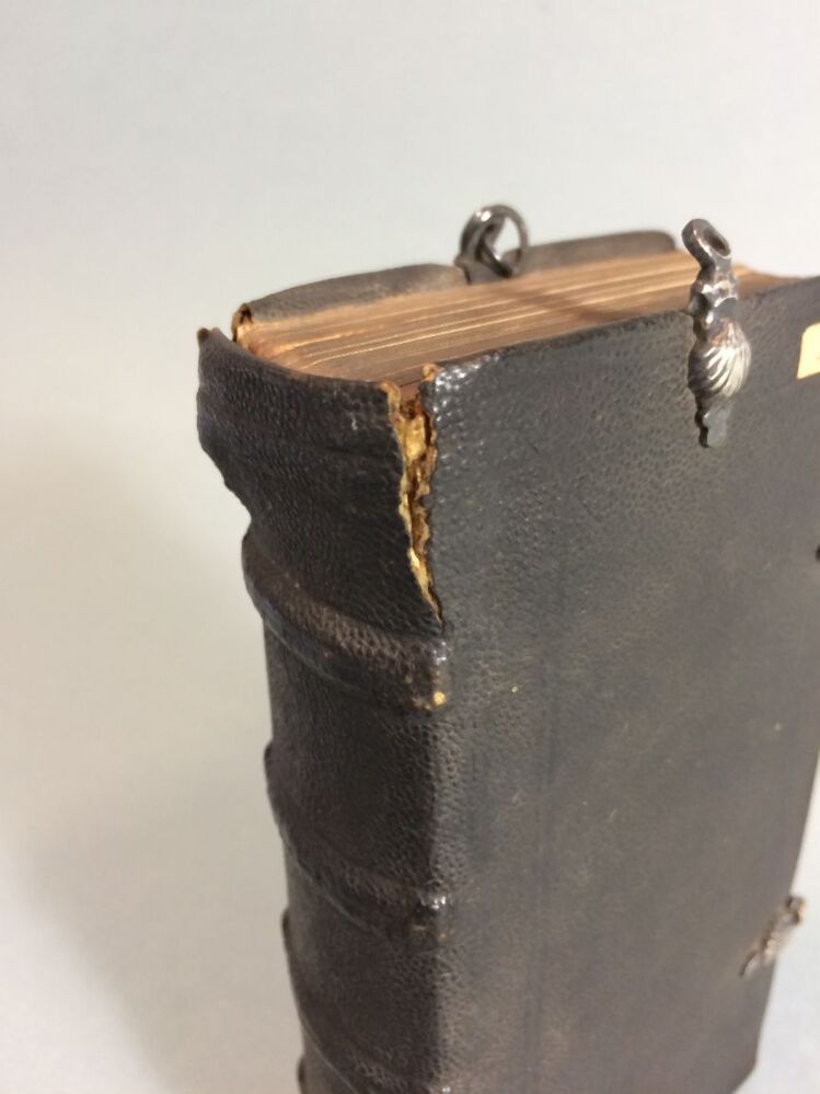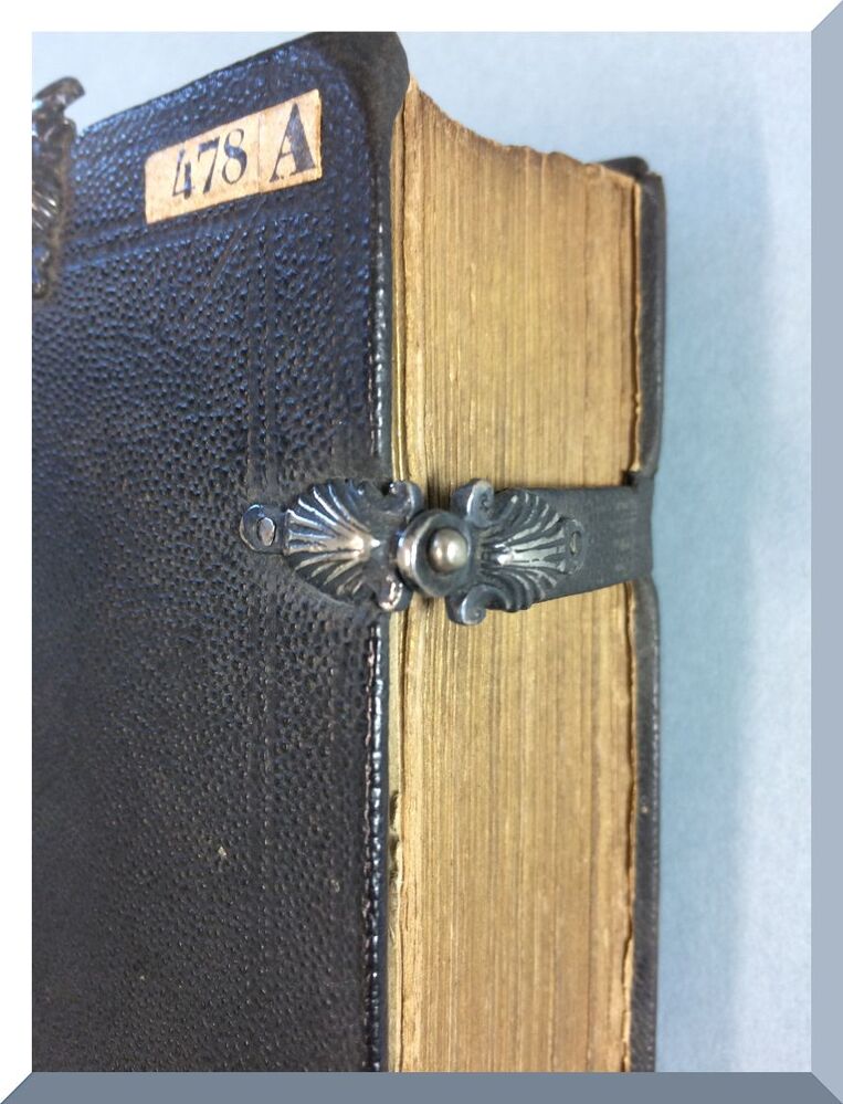 Het geheel van (edel)metalen, geornamenteerde bescherm- en/of versierstukken op kostbare boeken. De delen (kunnen) zijn: de hoeken, een centraal middendeel, klamphouders en klampen en een houder met ring middenboven voor een draag- of vergrendelingsketting.