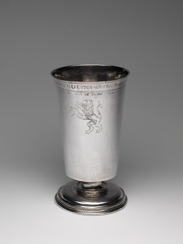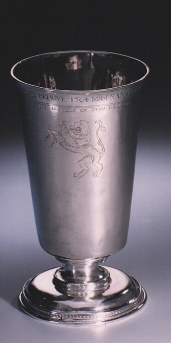 Een van twee kelken van de Oldehove in gebruik als avondmaalsbeker in de Jacobijnerkerk in Leeuwarden