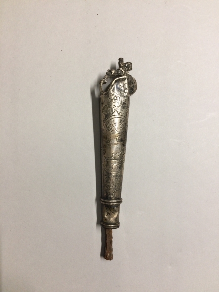 Zilveren mesheft met medaillons met bijbelse voorstellingen